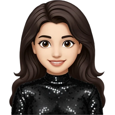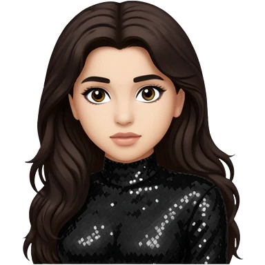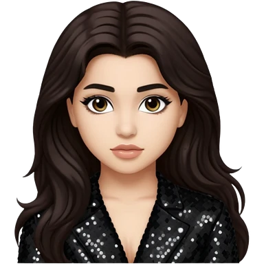 Camila Cabello from Fifth Harmony with long dark brown hair, black sequin outfit emoji | AI Emoji Generator