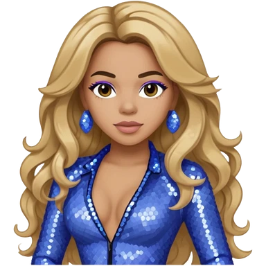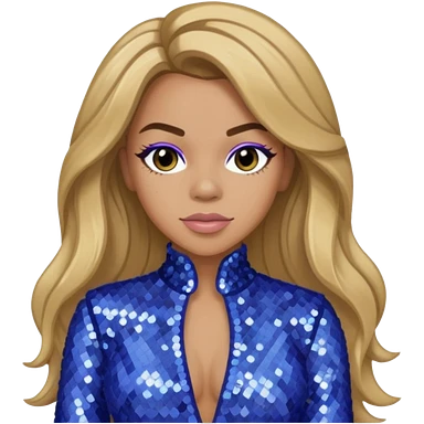 Normani from Fifth Harmony with long black hair, periwinkle sequin outfit emoji