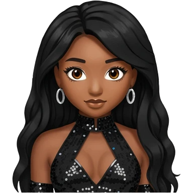Normani from Fifth Harmony with long black hair, black sequin outfit emoji