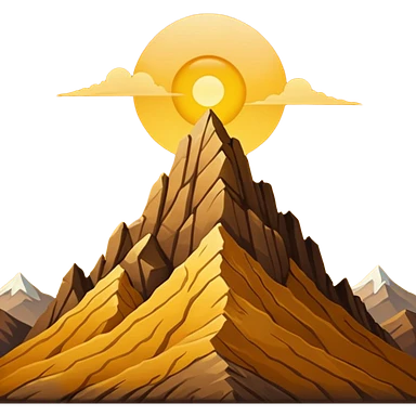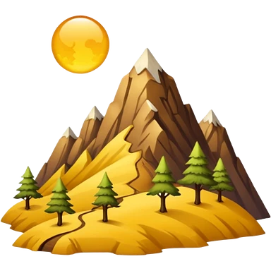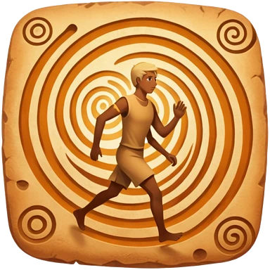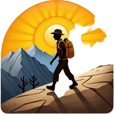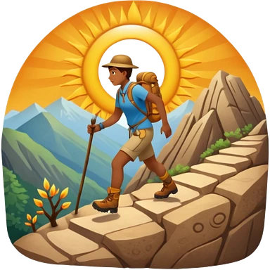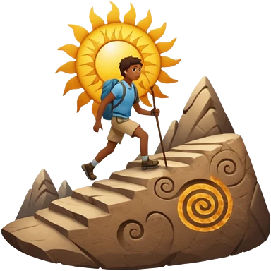 una mezcla de sol + montaña + caminante estilo petroglifo con un espiral tipo energía ancestral emoji