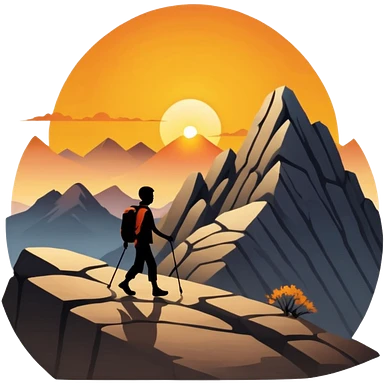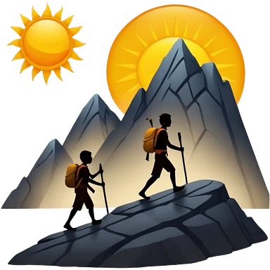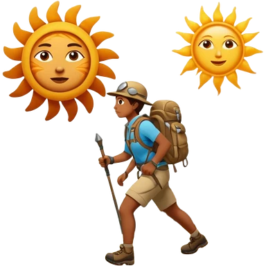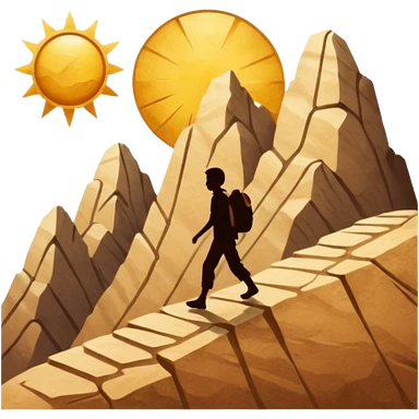una mezcla de sol + montaña + caminante estilo petroglifo emoji