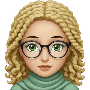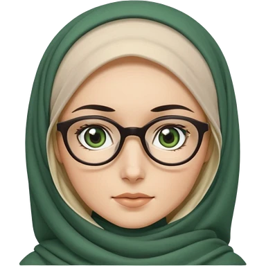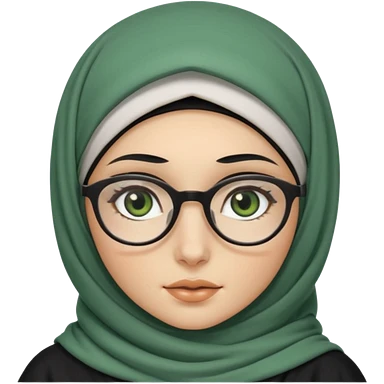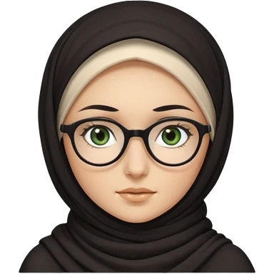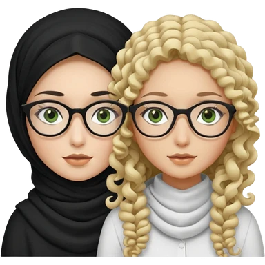 White hijabi girl with black eyes and black long hair white girl and black eyes wearing glasses and a white skin girl with curly honey hair and green eyes emoji