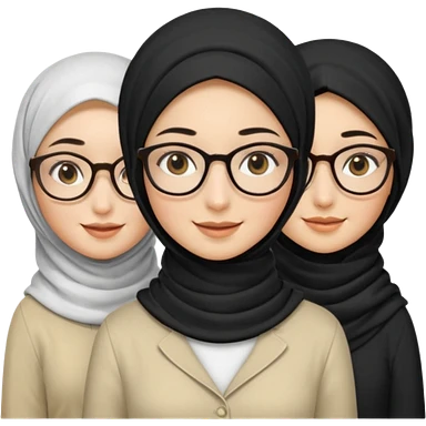 White hijabi girl with black eyes with another girl have long black hair wearing glasses with another another girl have curly short honey hair and wearing white glasses emoji