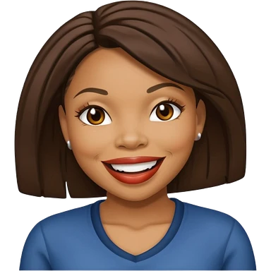 Naomi Campbell long black hair smiling pink lipstick emoji