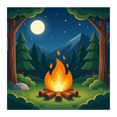 campfire with pot of boiling water hanging above, steam coming out emoji
