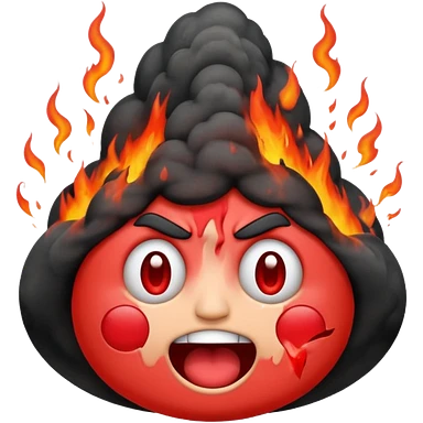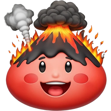 can i have an image of an red faced emoji with a small vocano th the top of its head erupting emoji
