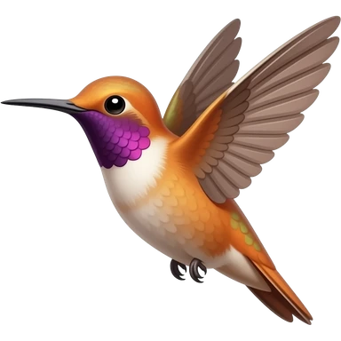 A small peach and purple hummingbird emoji simple flying emoji