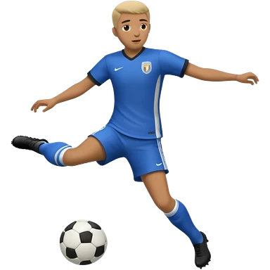 Can you generate an Apple style emoji of a Rabona soccer shot. A rabona shot is when a player strikes the ball with his kicking foot wrapping around his standing leg emoji | AI Emoji Generator