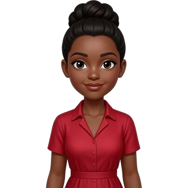 Can you generate a black girl with a updo and wearing a v-line red dress shirt that is tight in the middle? emoji