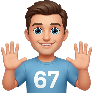 Creete a guy saying 67 by hands the number in his hands emoji