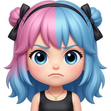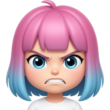Can you make a chibi girl that has pink and blue hair and has a angry face emoji
