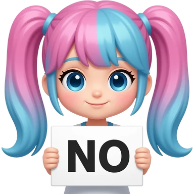 Can you make a chibi girl that has pink and blue hair with a sign that says no emoji