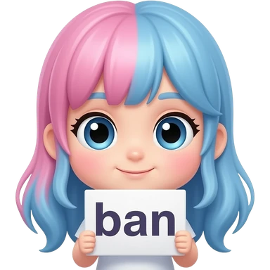 Can you make a chibi girl that has pink and blue hair with a sign that says ban emoji