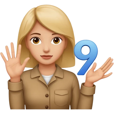 Can you make a girl face forwards and drop her head downwards facing the ground where her right arm is bent with her elbow outwards and her fingertips near her face while the left hand is put out straight and fingers pointed. emoji | AI Emoji Generator