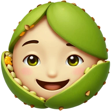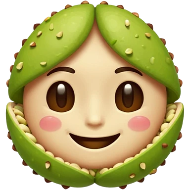 can you make a cuite pistachio emojii that is pixalited and wear th echaracter laught/ smile to the point where it closes it eyes emoji