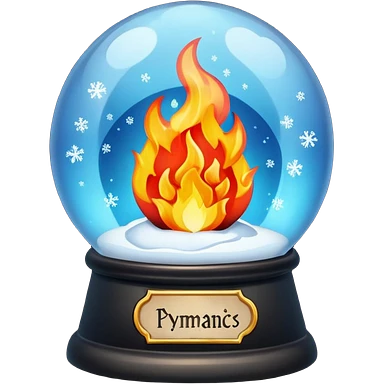 Can you make a snow globe emoji with a flame in it, gothic style, I want it to say pyromaniacs as a plaque emoji