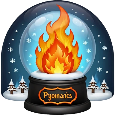 Can you make a snow globe emoji with a flame in it, gothic style, I want it to say pyromaniacs emoji