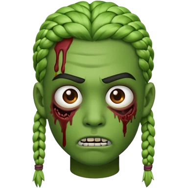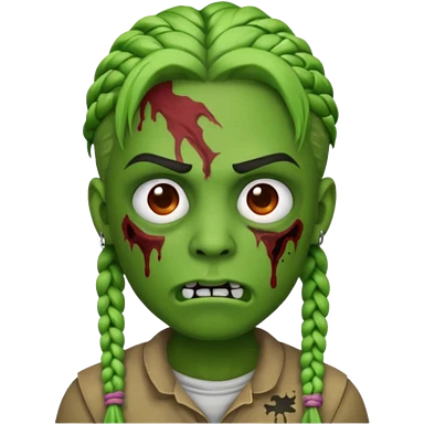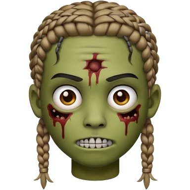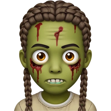 can you make an boy zombie emoji with small stitch braids and a eyebrow piercing on his right eyebrow and a diagonal eyebrow piercing on his left eyebrow emoji | AI Emoji Generator