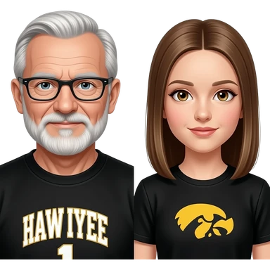Can you make an bald old man with a Hawkeye shirt on and a girl with light straight brown hair with hazel eyes in a Iowa Hawkeyes shirt emoji