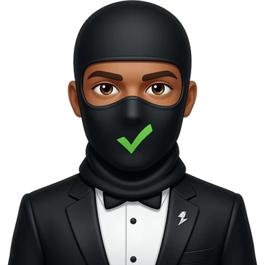 Can you please use this emoji 🤵🏻 and make it wear a black jacket with a tick on it and wear a balaclava emoji