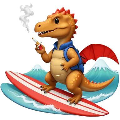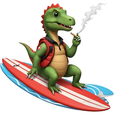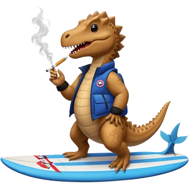 dinosual smokig a ciggerett while surfing wearing canada goose emoji