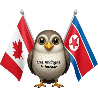 the flag of canada and north korea with a bird and on the bird the words "the marriage is intense" on his belly emoji
