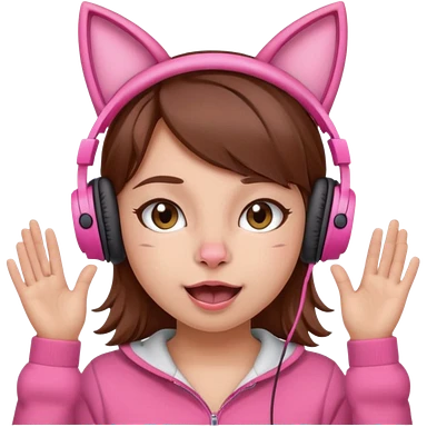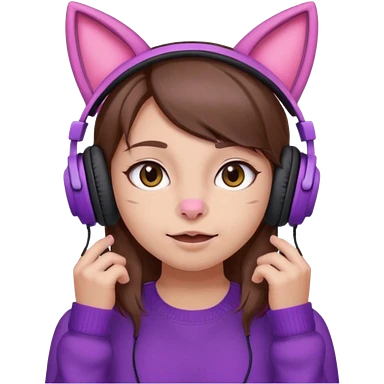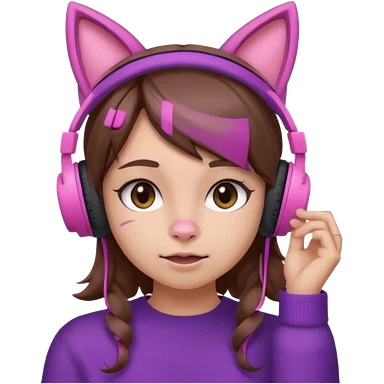 une fille avec des écouteurs de chat rose et des cheveux brun qui est crazy chandaille mauve emoji