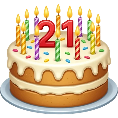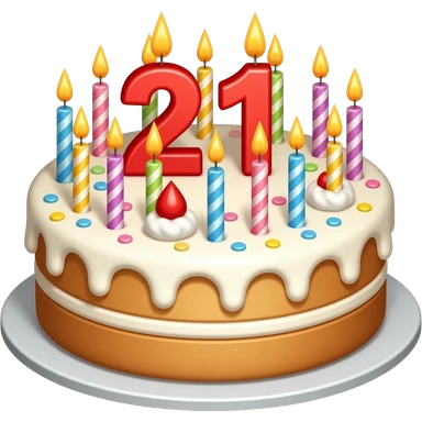 21 birthday cake colorful 4 tier with colorful sprinkles and candles on top emoji