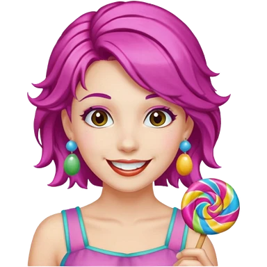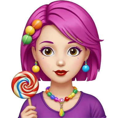 colorful hair woman with candy accessories, not holting a candy emoji