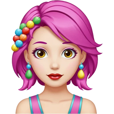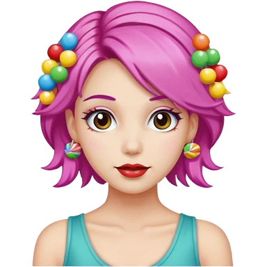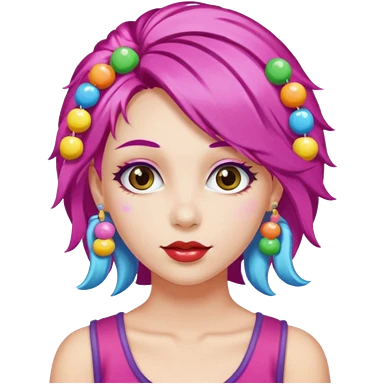 colorful hair woman with candy accessories, not holding a candy emoji