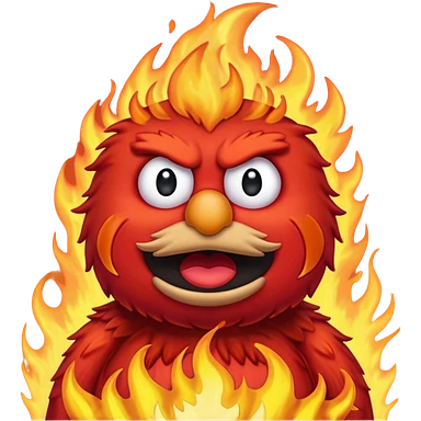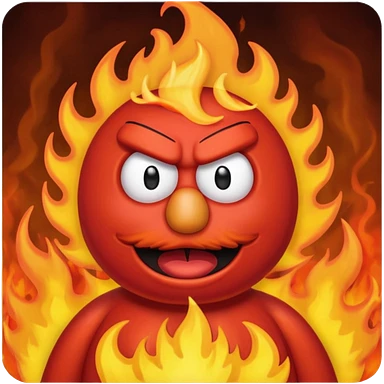 Elmo angry surrounded by fire emoji