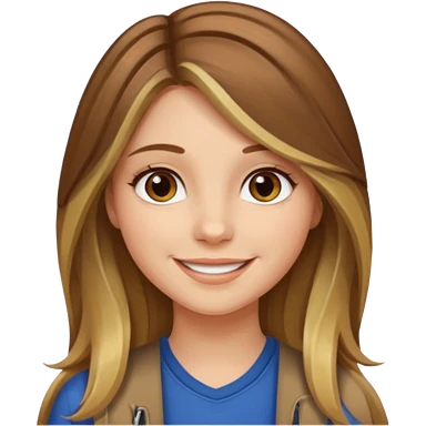 make a girl with long brown hair with blond highlights and layers with hazel eyes emoji