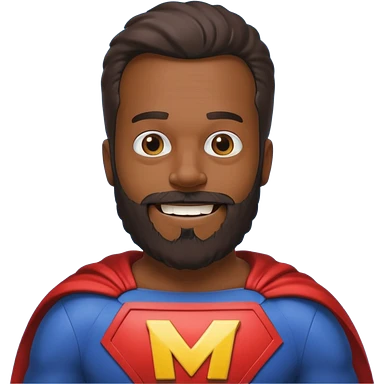 бородатый мужчина в костюме супер героя с буквой М на груди без маски веселится emoji