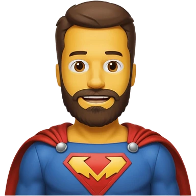 бородатый мужчина в костюме супер героя с буквой М на груди веселится в стиле симсонов emoji
