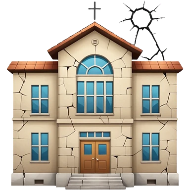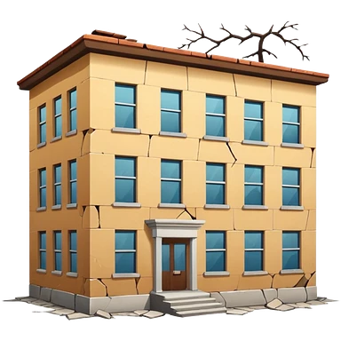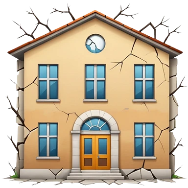 Abandoned school, cracked walls, broken windows, no background, simple style, minimal details emoji
