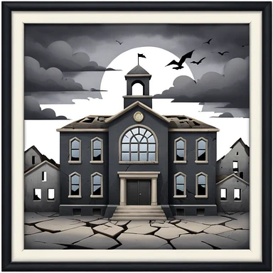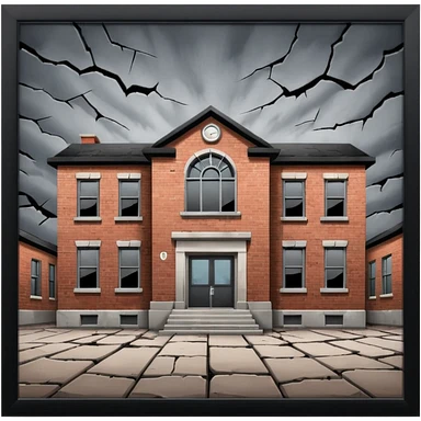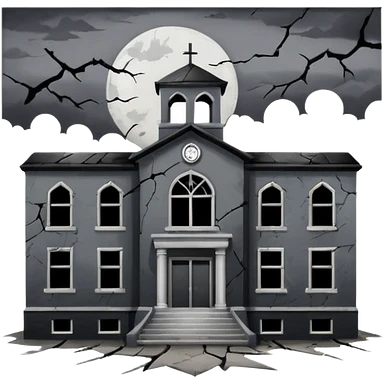 A broken/abandoned school with cracks and dust with no back ground in an abandoned place with a blackish greyish sky emoji