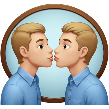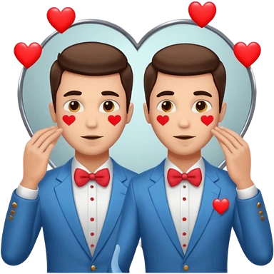 Narcissist fully dressed man looking in a mirror and kissing his reflection emoji