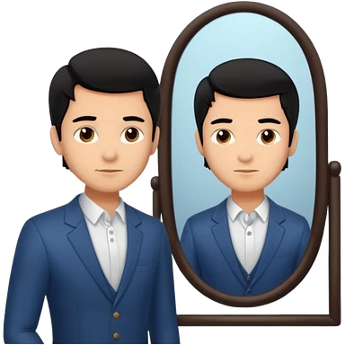 Narcissist fully dressed man looking in a mirror and admiring his reflection emoji