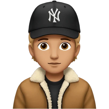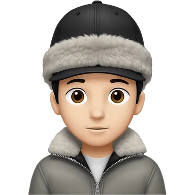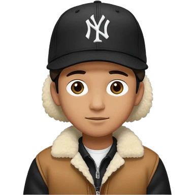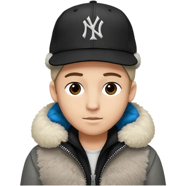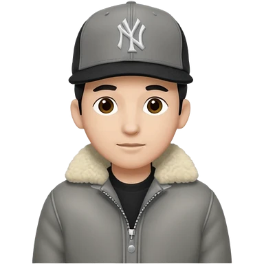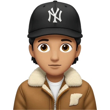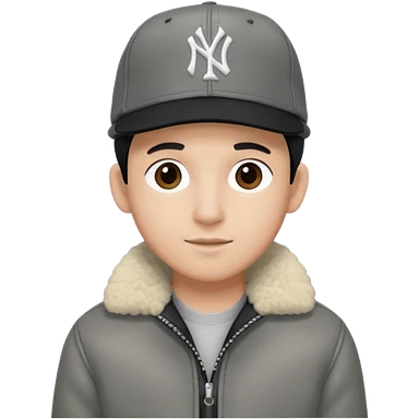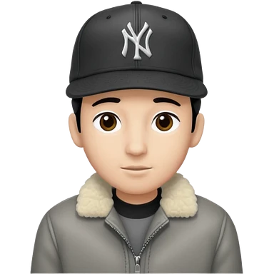 Cappellino New Era New York nero e persona con giubbotto di pecora grigio la pelliccia anche dove la zip emoji