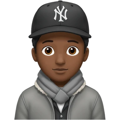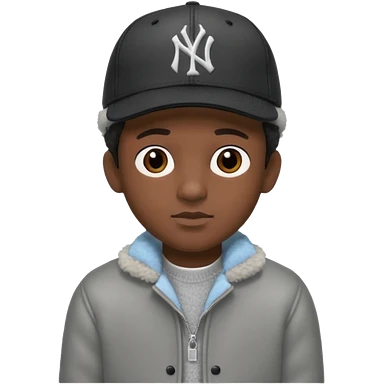 Cappellino New Era New York nero e persona con giubbotto di pecora grigio e anche la lana grigia emoji