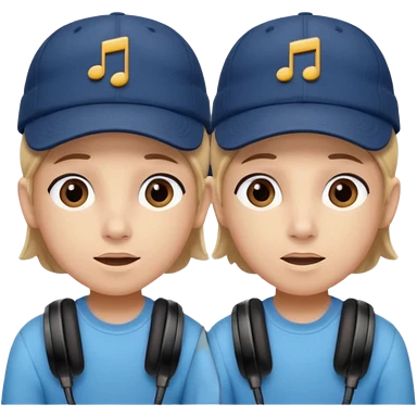 Make me a twin wearing a cap while listening to a song emoji