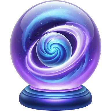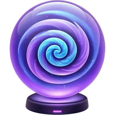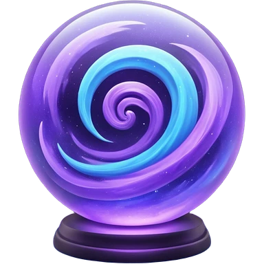 a glass sphere filled with swirling purple and blue dust, glowing, 3d emoji