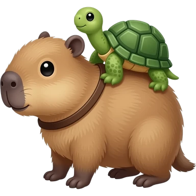 Capibara bebé con una tortuga pequeña en la espalda , como si fuese su mochila emoji