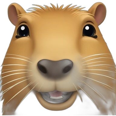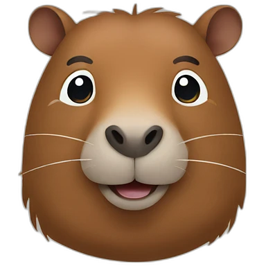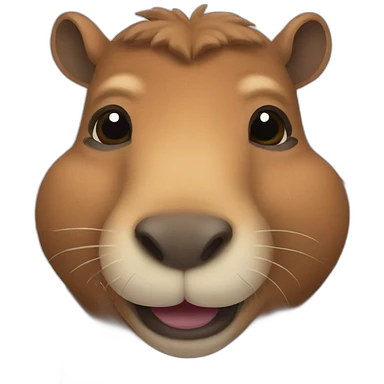 happy 10-year-old white girl with long brown hair kind of messy hair, smiling next to capybara emoji