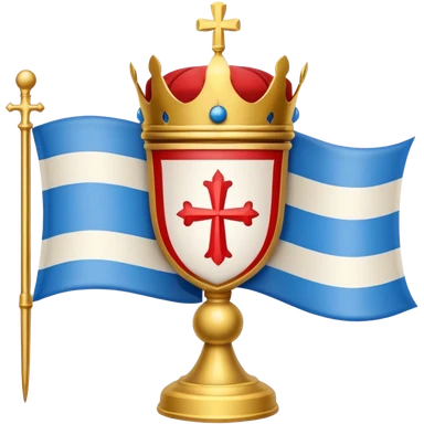 Hazme el emogi de la bandera gallega: cuadrado con una linea orizontal el escudo de color azul con una copa de oro i una bola blanca encima una corona de color rojo i oro con una cruz pequeña en la punta y el fondo blanco emoji