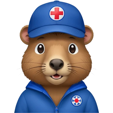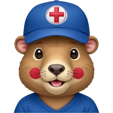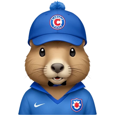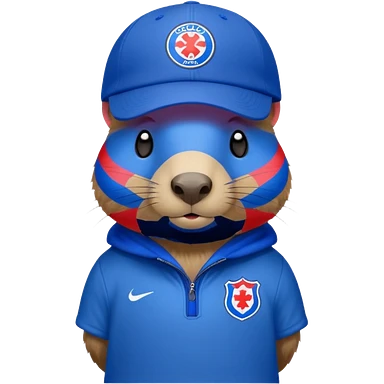 Capibara with a cruz azul soccer logo in a cap emoji | AI Emoji Generator