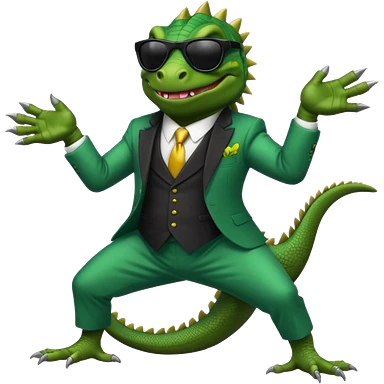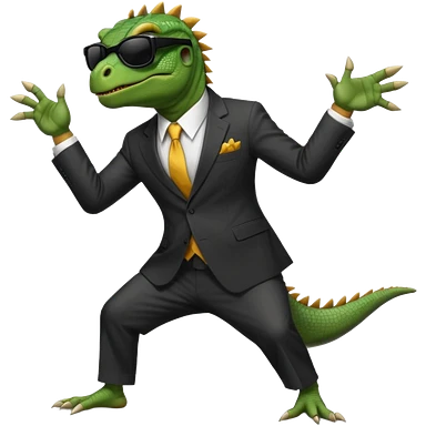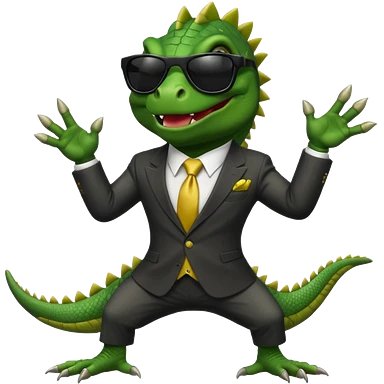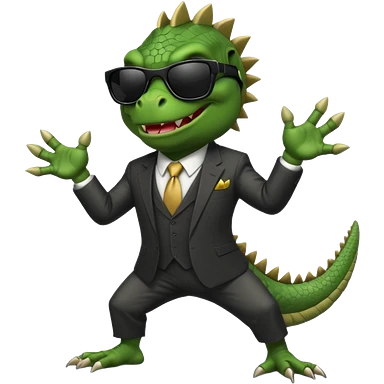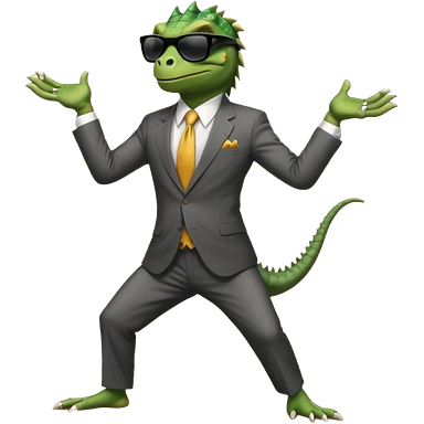 capitalist iguana banker godfather with black sunglasses breakdance scaring emoji