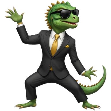 capitalist iguana banker godfather with black sunglasses breakdance no problem emoji | AI Emoji Generator
