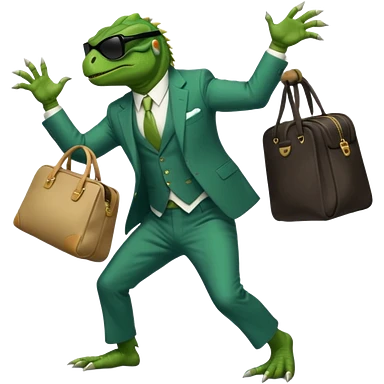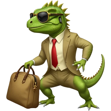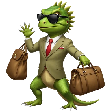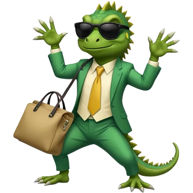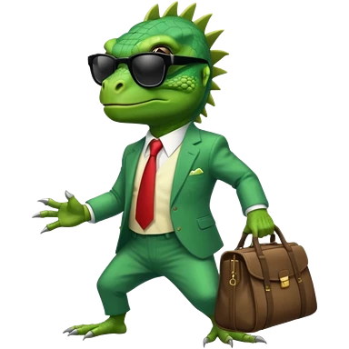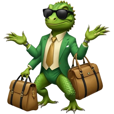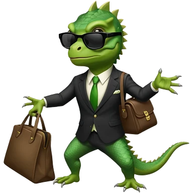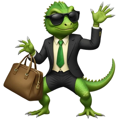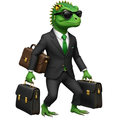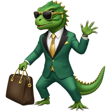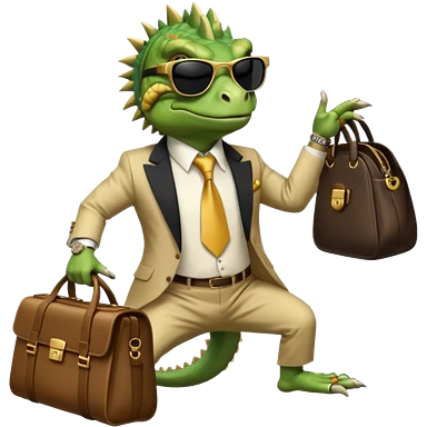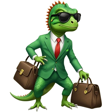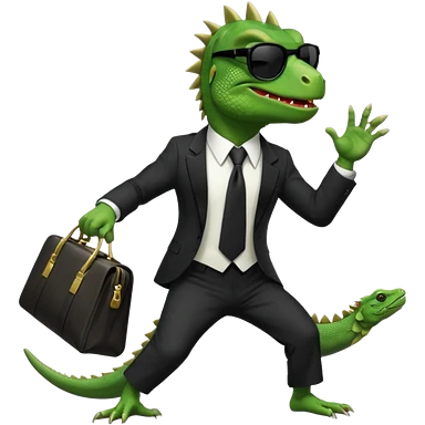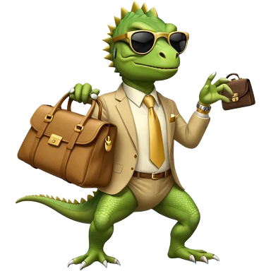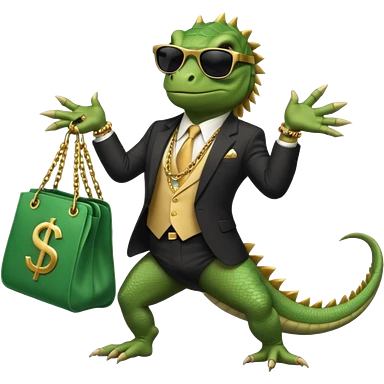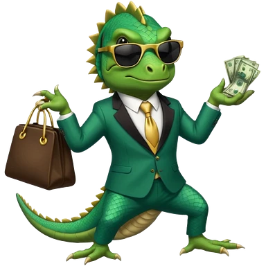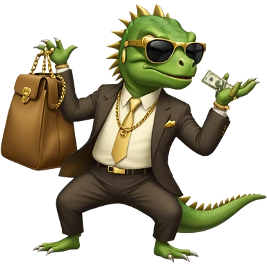 capitalist iguana banker godfather with black sunglasses breakdance with bag emoji | AI Emoji Generator