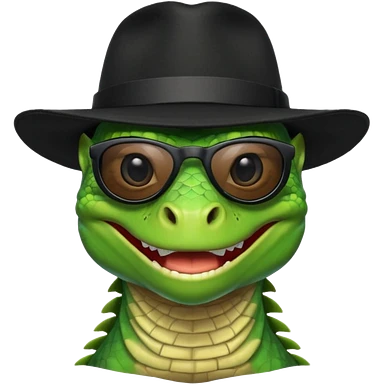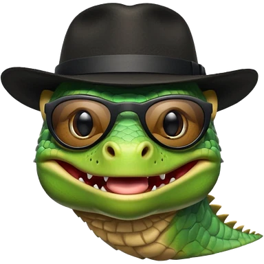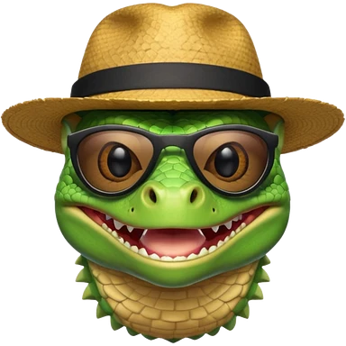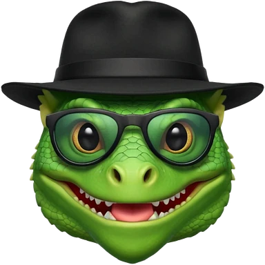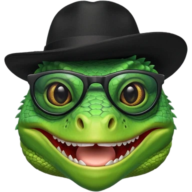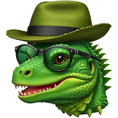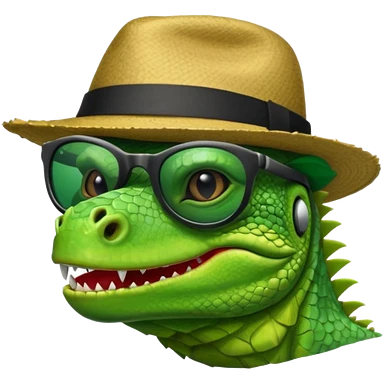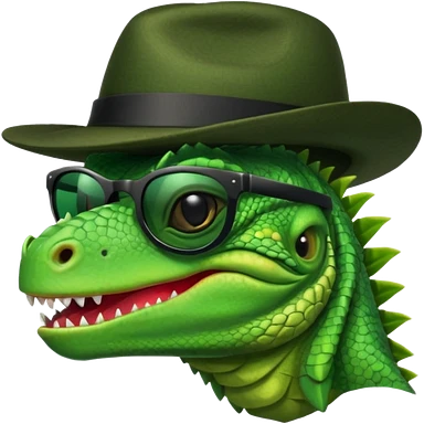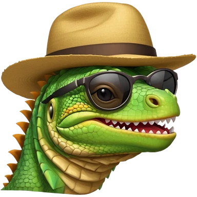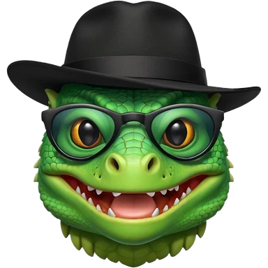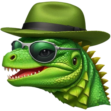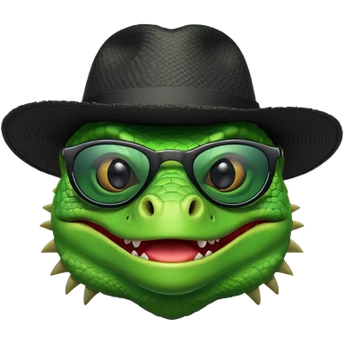 capitalist iguana head with black reflex sunglasses and hat smiling sarcastically emoji | AI Emoji Generator